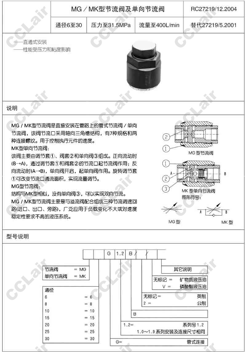MK6G1.2,MK8G1.2,MK10G1.2,MK15G1.2,MK20G1.2,MK25G1.2,MK30G1.2,huade單向節(jié)流閥