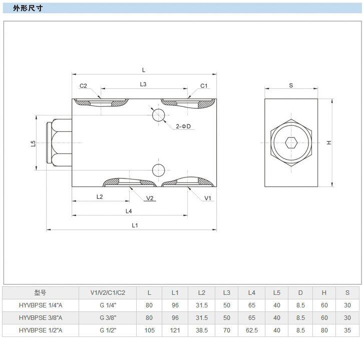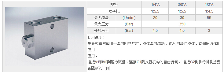 詳細信息 HYVBPSE 1/4"A,HYVBPSE 3/8"A,HYVBPSE 1/2"A,單先導(dǎo)式單向閥