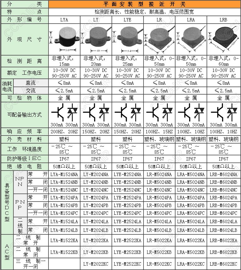LYA-M1524NA,LY-M2024NA,LYE-M2524NA,LR-M5024NA,LRA-M5024NA,LRB-M6024NA,LYA-M1524NB,平面安裝型接近開(kāi)關(guān)