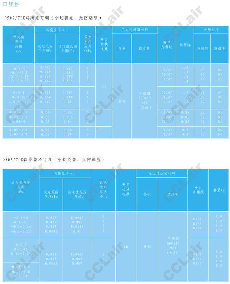 D502/7D,D502/7DK,壓力控制器,CCLair