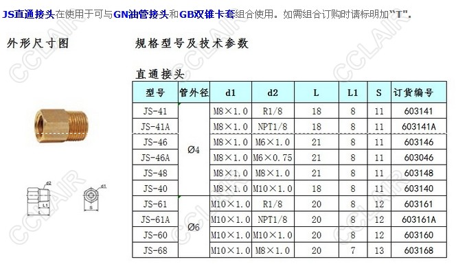 JS-41,JS-41A,JS-46,JS-46A,JS-48,JS-40,JS-61,JS-61A,JS-60,JS-68,直通接頭