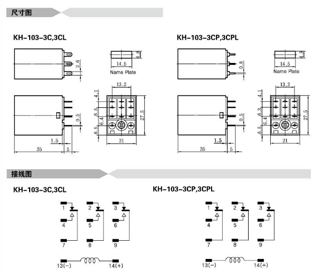 詳細信息 KH-103-3C,KH-103-3CL,KH-103-3CP,KH-103-3CPL,Koino中間繼電器