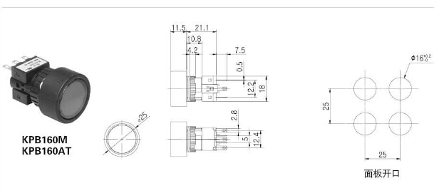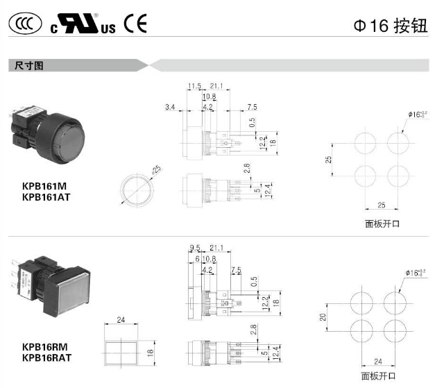 詳細信息 KPB16M,KPB16AT,KPB16SM,KPB16SAT,KPB160M,KPB160AT,KPB161M,KPB161AT,KPB16RM,KPB16RAT,KoinoΦ16按鈕