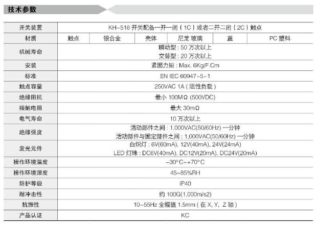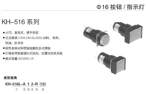 型號: KH-516-A11,KH-516-B11,KH-516-C11,KH-516-D31,KH-516-A12,KH-516-B12,KH-516-C12,KoinoΦ16按鈕燈