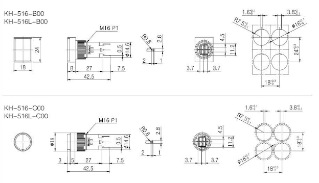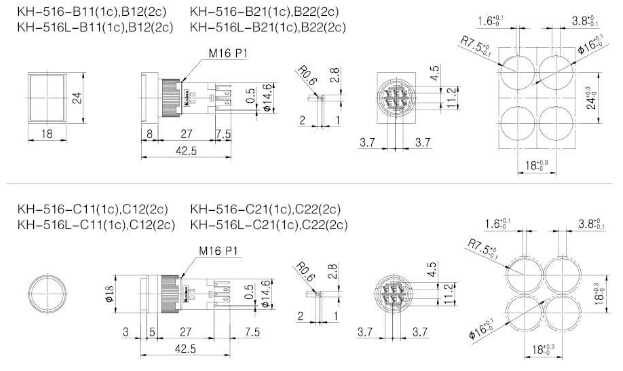 KH-516-A11,KH-516-B11,KH-516-C11,KH-516-D31,KH-516-A12,KH-516-B12,KH-516-C12,KoinoΦ16按鈕燈