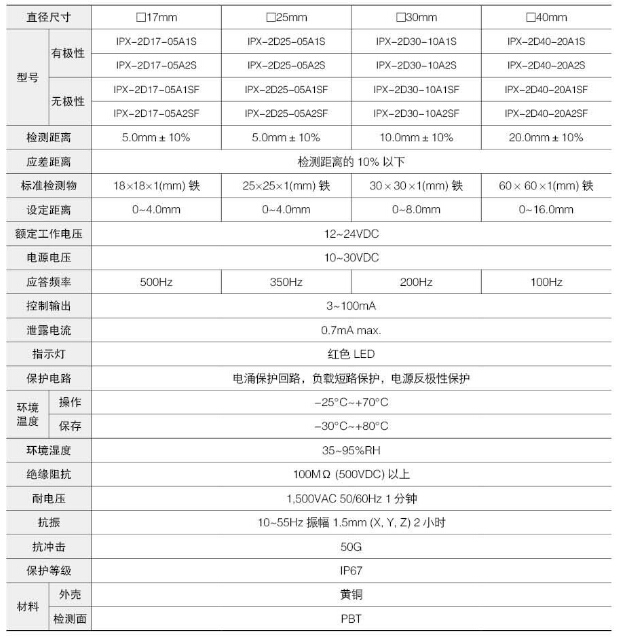 IPX-2D25-05A1S,IPX-2D30-10A1S,IPX-2D40-20A1S,IPX-A25-05A1S,IPX-A30-10A1S,IPX-A40-20A1S,Koino方形接近開關(guān)