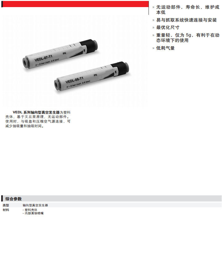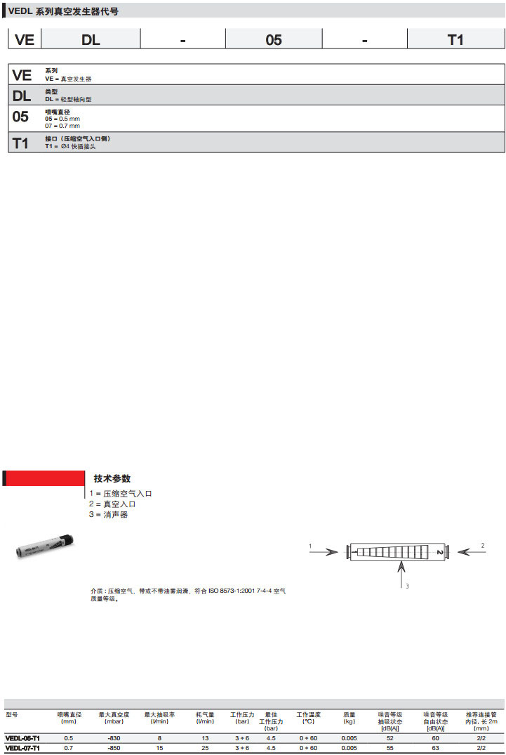 詳細信息 VEDL-05-T1,VEDL-07-T1,camozzi軸向型真空發(fā)生器