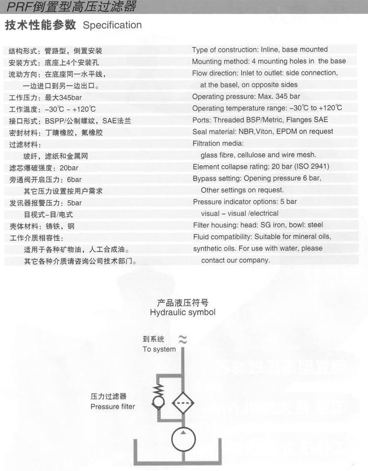 PRF0040,PRF0063,PRF0110,PRF0160,PRF0250,PRF0400,PRF0630,PRF0800,PRF0040F002NB16,倒置型高壓過濾器