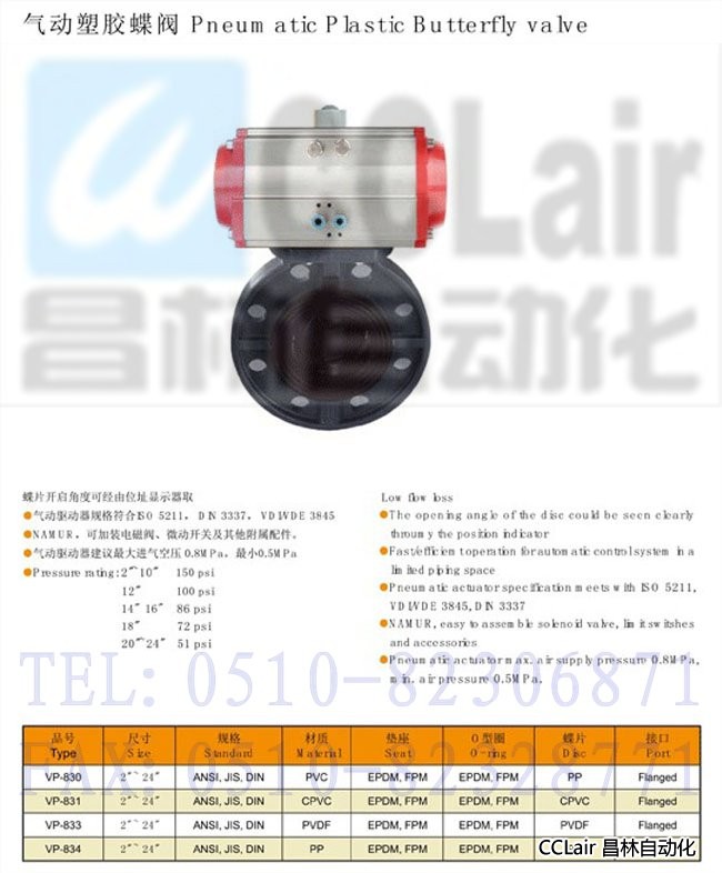 VP-830,VP-831,VP-833,VP-834,氣動塑膠蝶閥