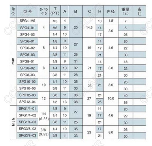 詳細信息 SPG4-M5,SPG4-01,SPG4-02,SPG6-01,SPG6-02,SPG6-03,SPG8-01,SPG3/8-03,內(nèi)牙直角快速接頭