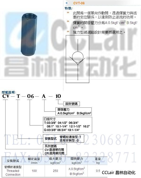 CVT-06-A-10,CVT-06-B-10,單向閥