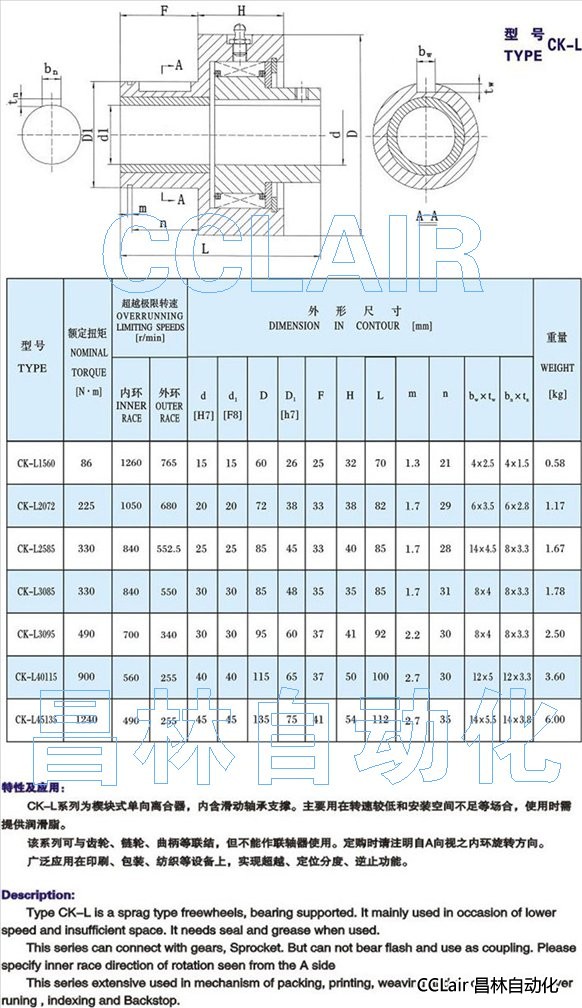 CK-L1560,CK-L2072,CK-L2585,CK-L3085,CK-L3095,CK-L40115,CK-L45135,單向離合器