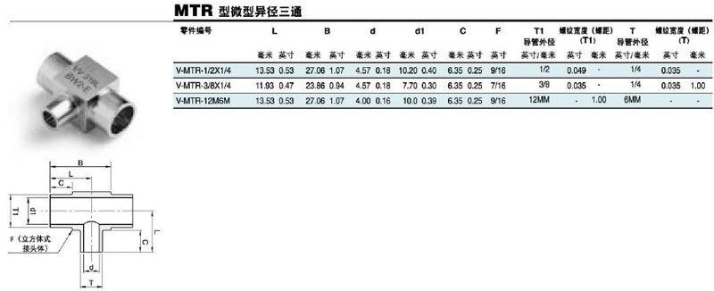 詳細(xì)信息 V-MTR-1/2*1/4,V-MTR-3/8*1/4,V-MTR-12M6M,微型異徑三通