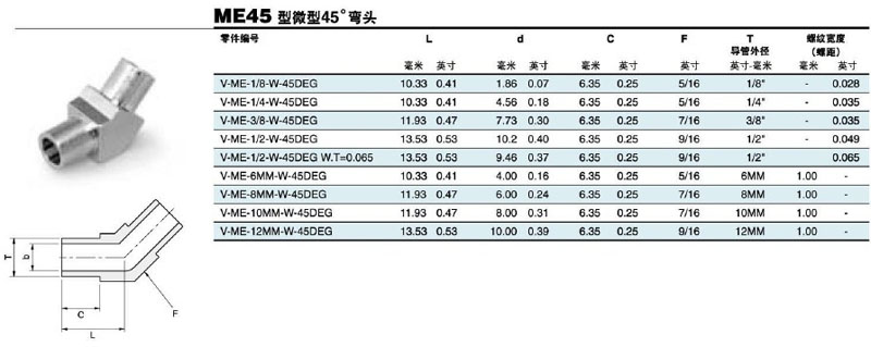 型號(hào): V-ME-1/8-W-45DEG,V-ME-1/4-W-45DEG,V-ME-3/8-W-45DEG,V-ME-1/2-W-45DEG,