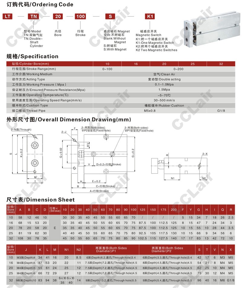 LTTN-10,LTTN-16,LTTN-20,LTTN25,LTTN32,LTTN-32-100,LTTN20×100,雙軸氣缸