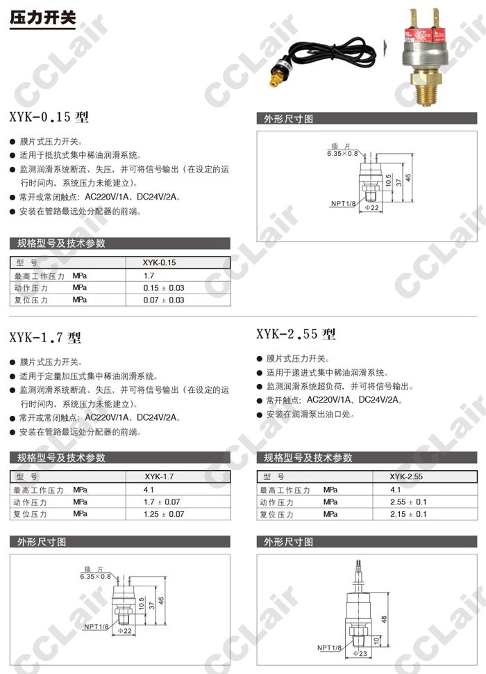 詳細(xì)信息 XYK-0.15,XYK-1.7,XYK-2.55,壓力開關(guān)