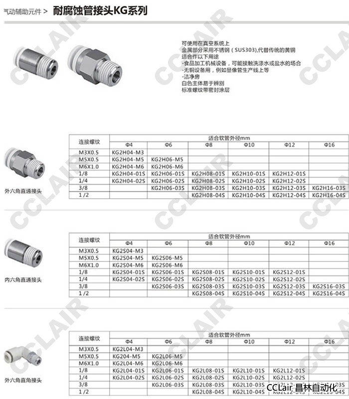 KG2L04,KG2L06,KG2L08,KG2L10,KG2L12,KG2L16,耐腐蝕管接頭