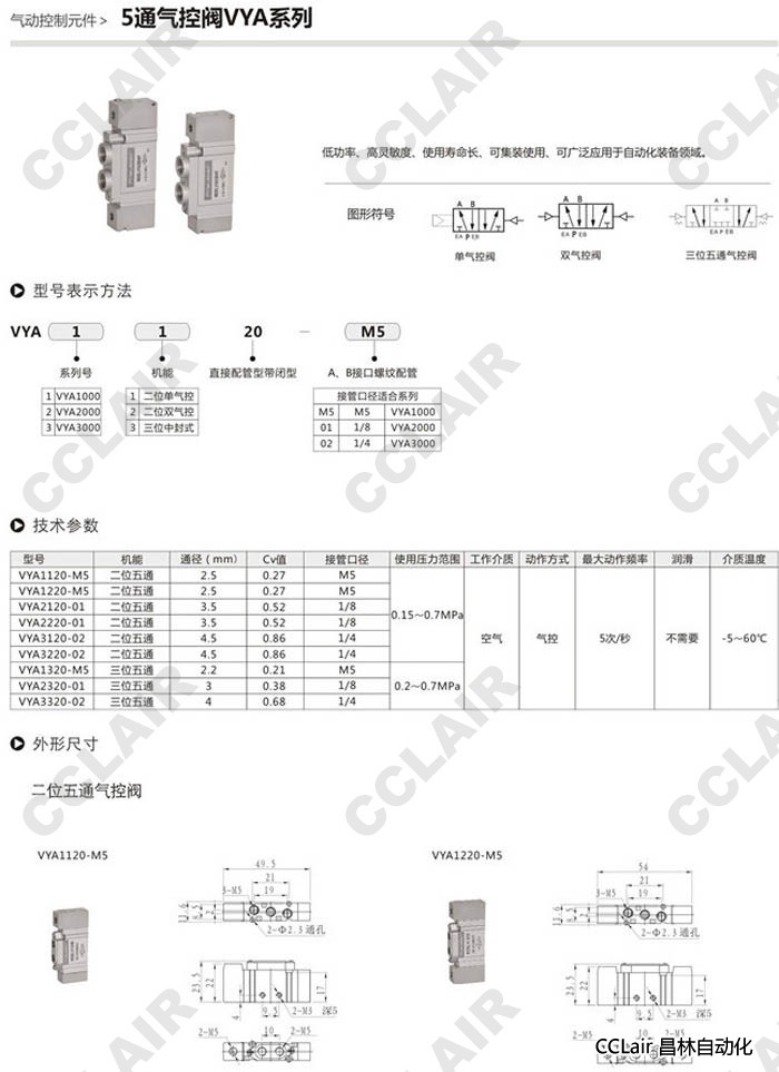 VYA3120-01,VYA3220-01,VYA3320-01,VYA3220-02,VYA3320-02,VYA3120-02,5通氣控閥