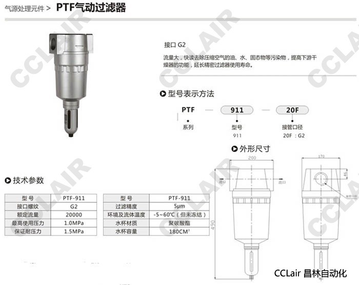 詳細(xì)信息 PTF-911-20F,氣動(dòng)過(guò)濾器
