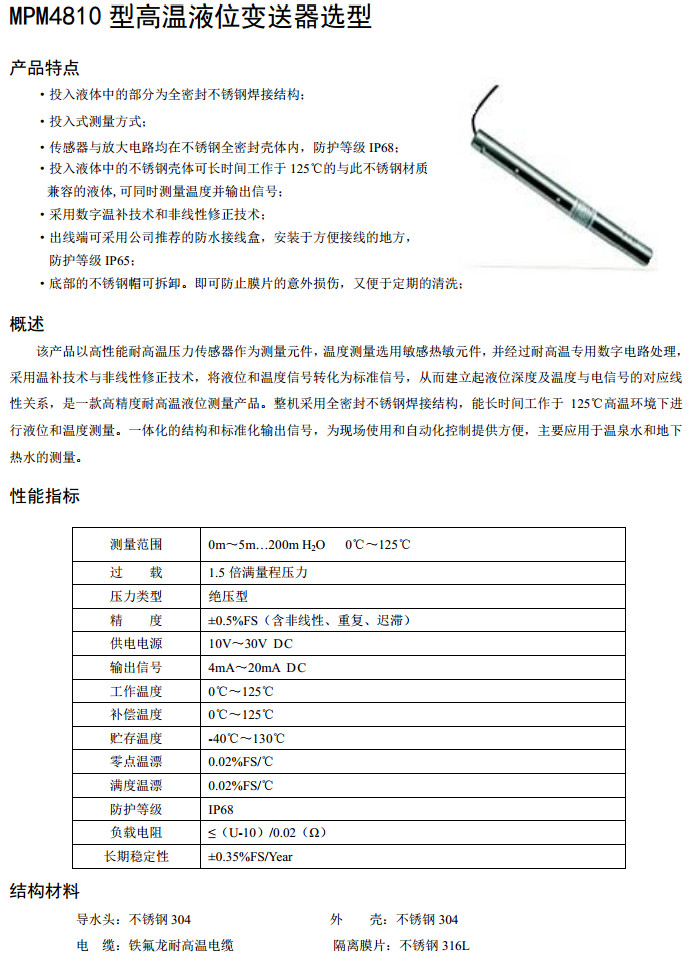 詳細(xì)信息 MPM4810-0,MPM4810-5,高溫液位變送器