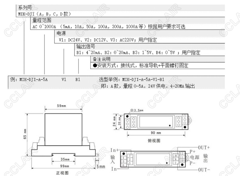 MIK-DJI-A-5A-V1-B1,MIK-DJI-C-5A-V1-B1,MIK-DJI-D-1000A-V3-B3,MIK-DJI,交流電流變送器