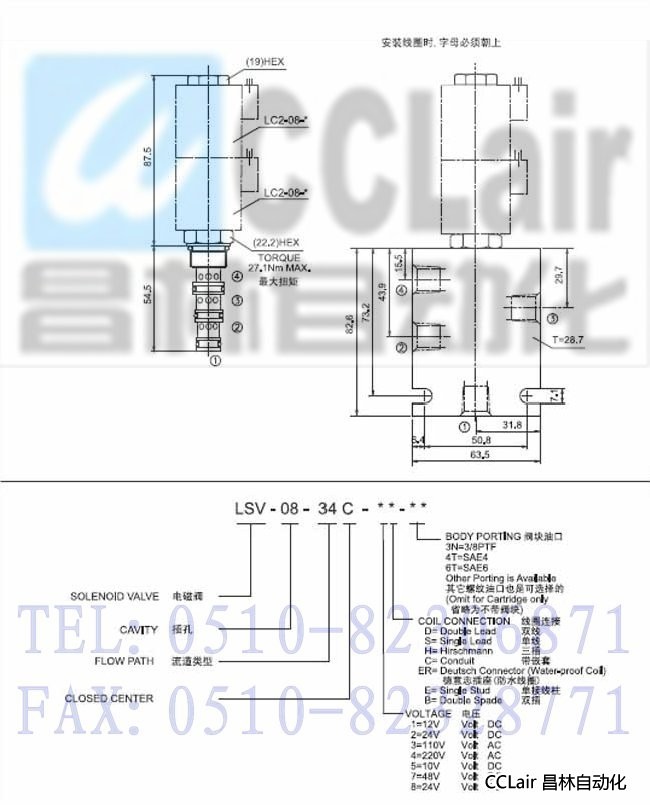 LSV-08-34C-8D,LSV-08-34C-8H,LSV-08-34C-8C,LSV-08-34C-8S,三位四通電磁閥,