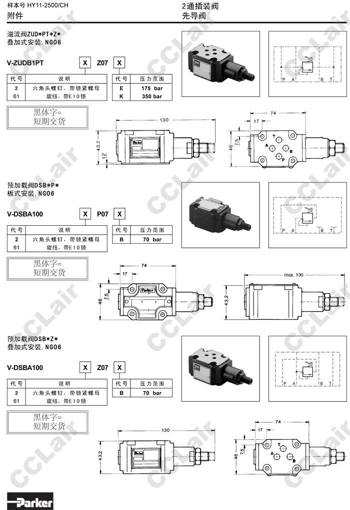 詳細信息 V-DSBA1002Z07B,V-DSBA10061Z07B,Parker2通插裝加載閥