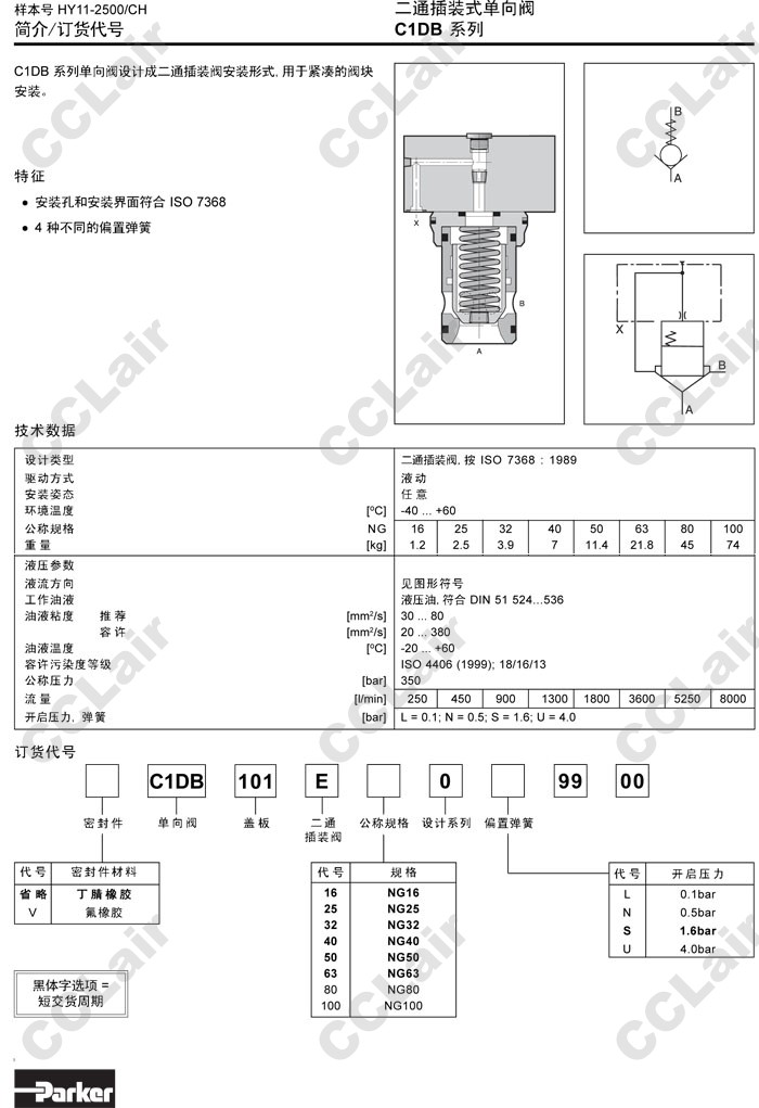 C1DB101E16,C1DB101E25,C1DB101E32,C1DB101E40,C1DB101E50,C1DB101E63,C1DB101E80,C1DB101E100,Parker二通插裝式