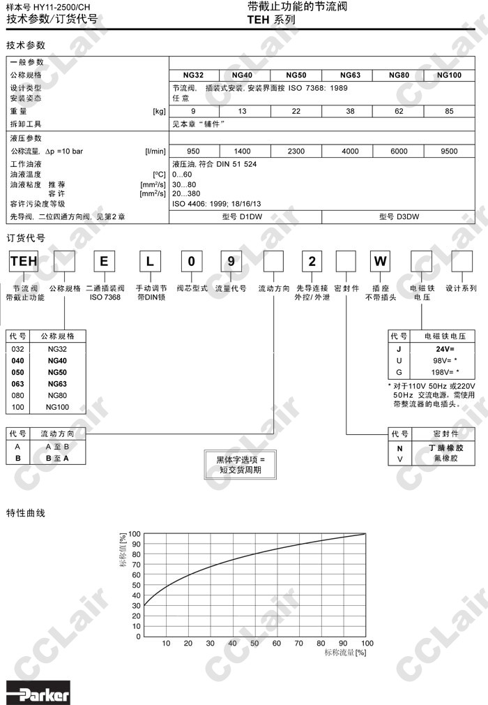 詳細信息 TEH032EL09A2NW,TEH040EL09A2NW,TEH050EL09A2NW,TEH063EL09A2NW,TEH080EL09A2NW,TEH100EL09A2NW,Parker節(jié)流閥