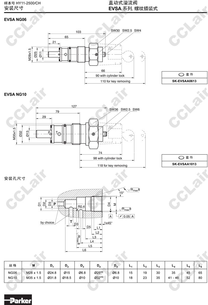 詳細信息 EVSA064A061,EVSA064A101,EVSA160A061,EVSA160A101,EVSA315A061,EVSA315A101,Parker直動式溢流閥
