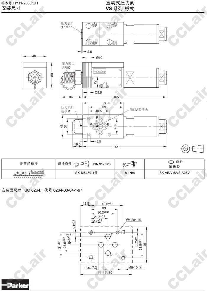 詳細信息 VS025A06VG,VS064A06VG,VS160A06VG,VS210A06VG,VS350A06VG,VS025A06VM,Parker直動式壓力閥