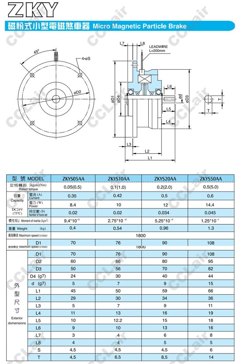 詳細(xì)信息 ZKYS05AA,ZKYS10AA,ZKYS20AA,ZKYS50AA,電磁剎車器,CCLair