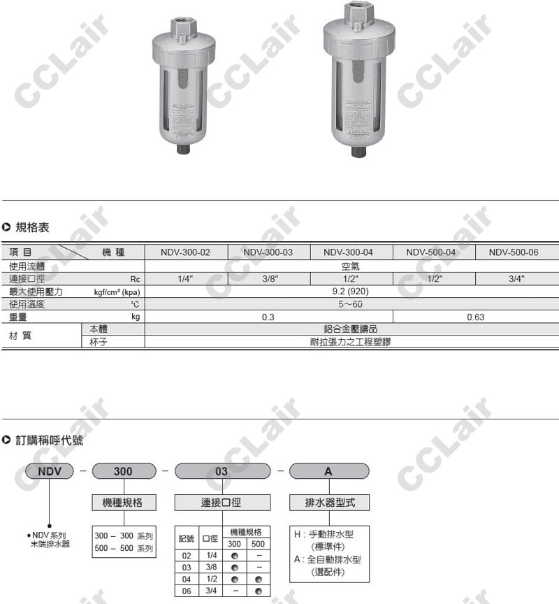 NDV-300-04-H,NDV-300-02-A,NDV-300-03-A,NDV-500-06-H,NDV-500-04-A,末端排水器