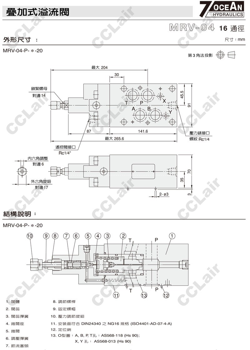 MRV-04-P-1-10,MRV-04-P-2-10,MRV-04-P-3-10,MRV-04-P-1-20,MRV-04-P-2-20,MRV-04-P-3-20,7OCEAN七洋疊加式壓力溢流閥