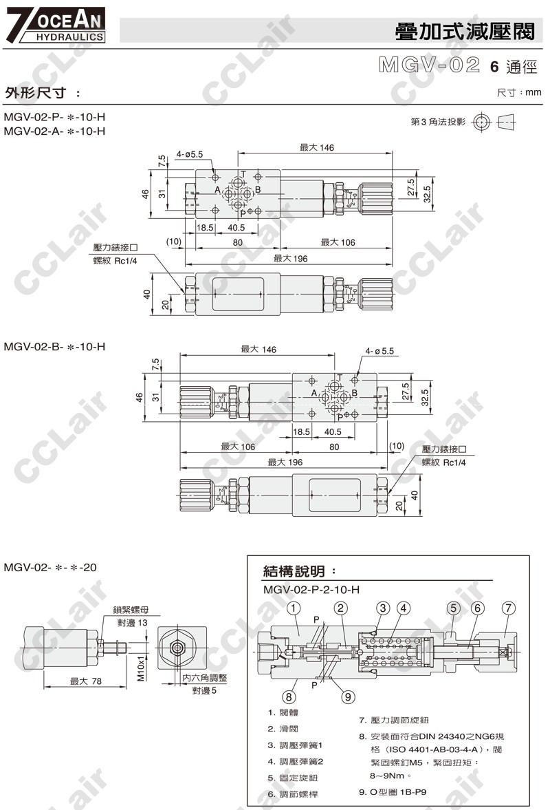 MGV-02-P,MGV-02-A,MGV-02-B,MGV-02-P-0-10,MGV-02-A-3-20,MGV-02-B-2-20,7OCEAN七洋疊加式壓力溢流閥