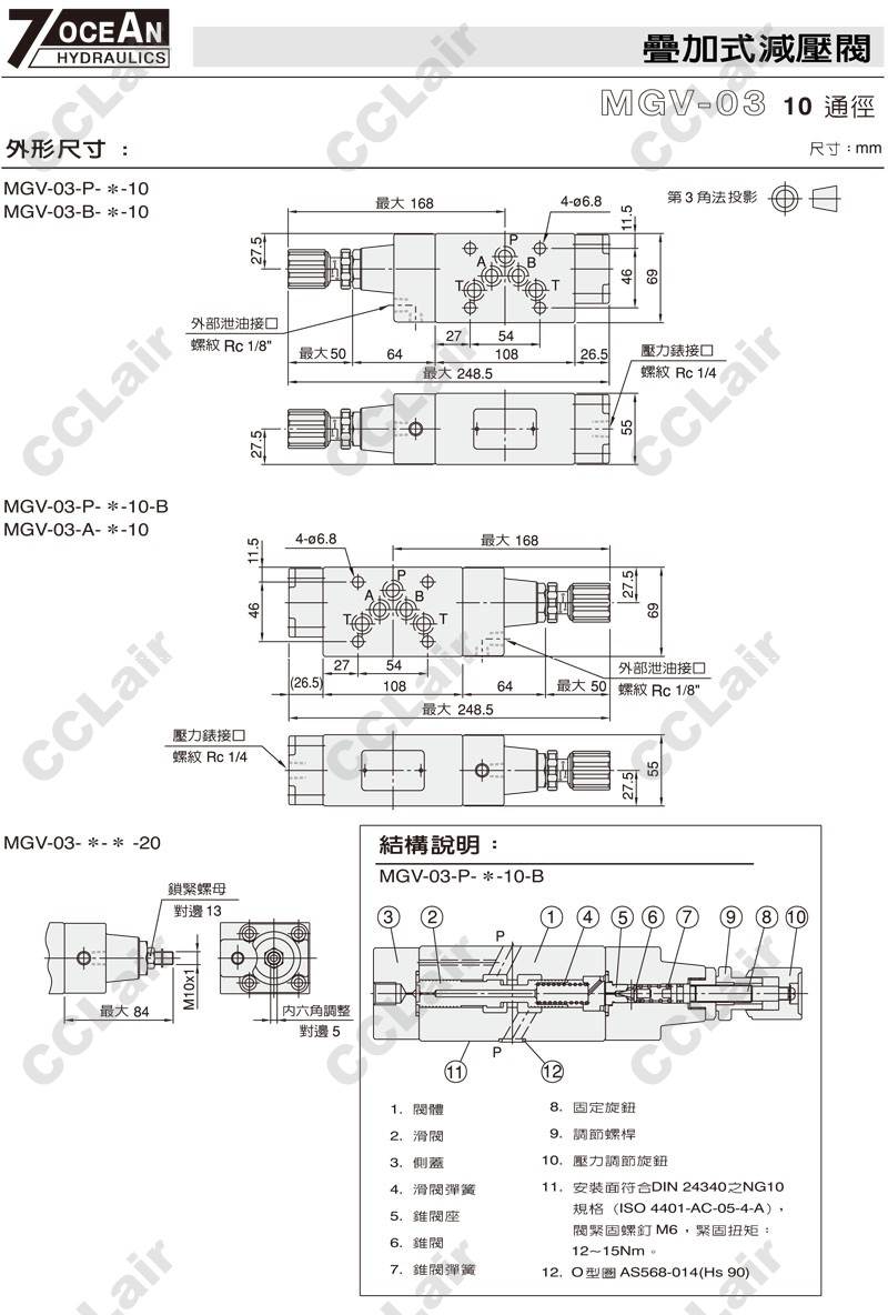MGV-03-P,MGV-03-A,MGV-03-B,MGV-03-P-0-10,MGV-03-P-3-20,MGV-03-A-2-20,7OCEAN七洋疊加式壓力減壓閥