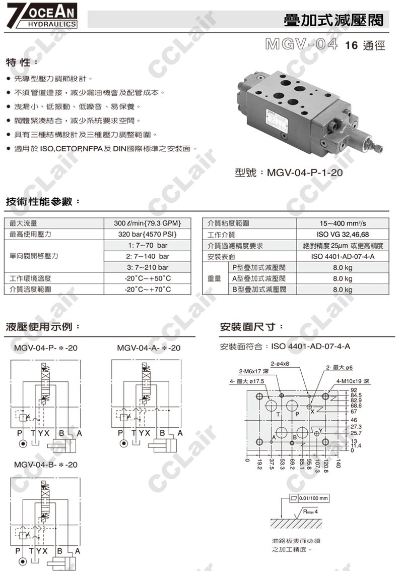 MGV-04-P,MGV-04-A,MGV-04-B,MGV-04-B-1-20,MGV-04-P-3-10,MGV-04-A-2-20,7OCEAN七洋疊加式壓力減壓閥