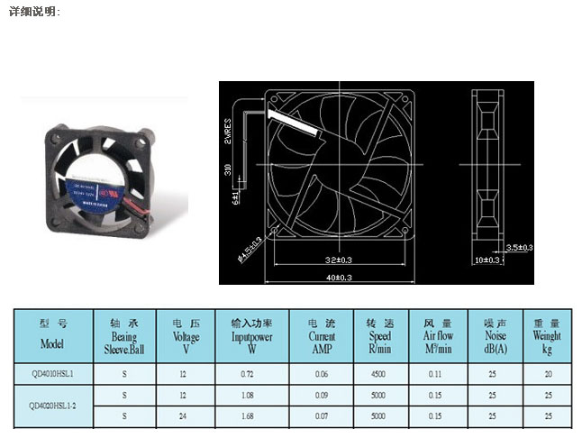 詳細(xì)信息 QD4010HSL1,QD4020HSL1-2,直流風(fēng)機(jī)