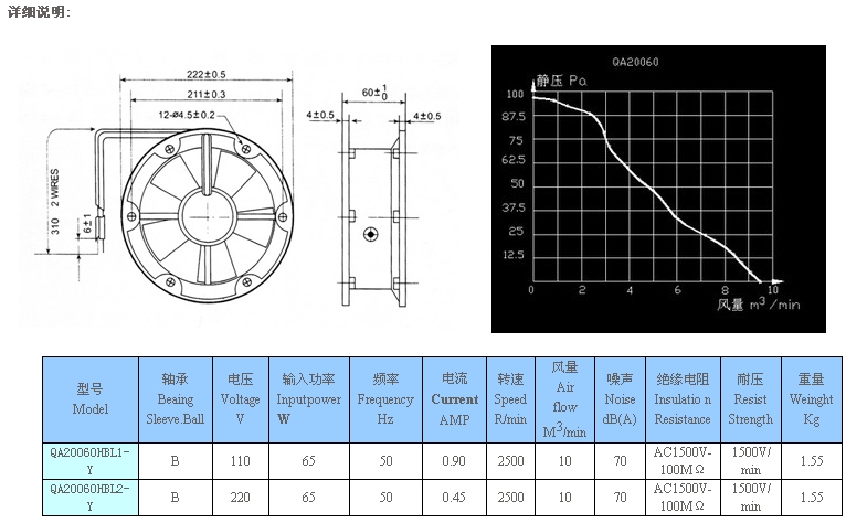 詳細(xì)信息 QA20060HBL1-Y,QA20060HBL2-Y,交流風(fēng)機(jī)