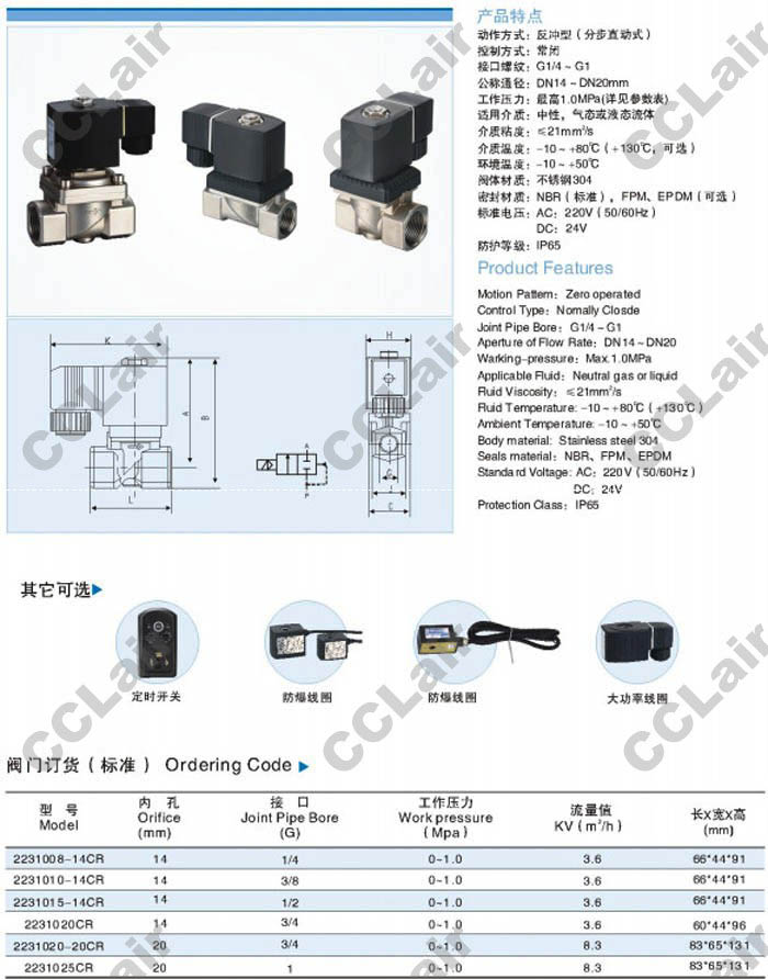 詳細信息 2231008-14CR,2231010-14CR,2231015-14CR,22301020CR,2231020-20CR,2231025CR,電磁閥