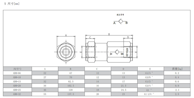 詳細信息 RTD-06-1-10,RTD-10,RTD-15,RTD-20,RTD-25,RTD-32,單向閥