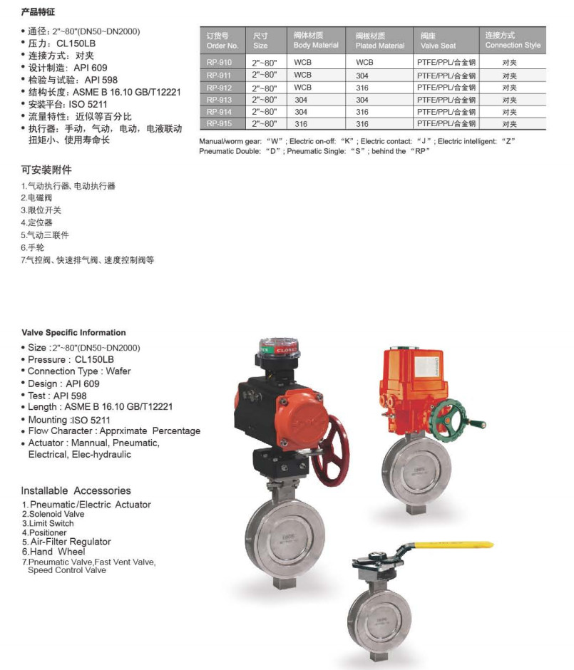 RP-910,RP-911,RP-912,RP-913,RP-914,RP-915,雙偏心蝶閥
