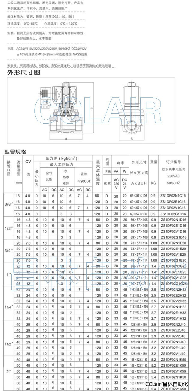 詳細信息 ZS1DF02V2H32,ZS1DF02N1H32,二位二通大口徑直動式(銅)電磁閥(常閉型)