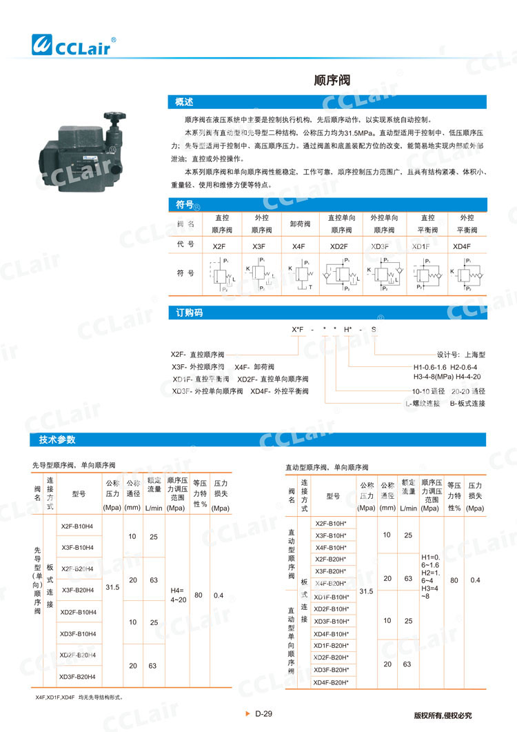 XD1F-B10H1-S,XD2F-B10H1-S,XD3F-B10H1-S,XD2F-B20H1-S,XD3F-B20H1-S,XD4F-B20H1-S,直動型單向順序閥