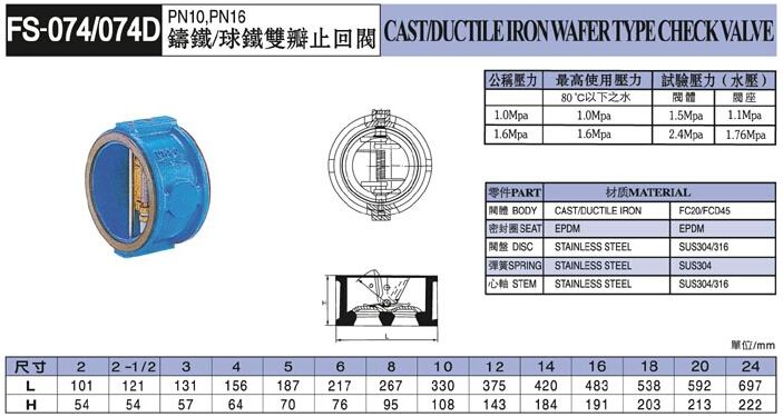 型號(hào): FS-074,FS-074D,鑄鐵止回閥
