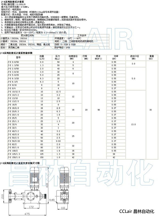 J-X 0.8/50,J-X 1.3/50,J-X 2.0/50,J-X 3.8/32,柱塞式計(jì)量泵