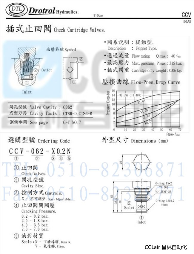 CCV-062-X0.2N,CCV-062-X2.0N,CCV-062-X4.0N,CCV-062-X7.0N,磐龍插式止回閥,