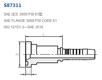 注:1、表中代號(hào)用于編織軟管。 2、如需用于纏繞軟管代號(hào)改為S87321-XX-XX。 S87311-12-10,S87311-12-12,S87311-12-16,S87311-16-16,S87311-16-20,