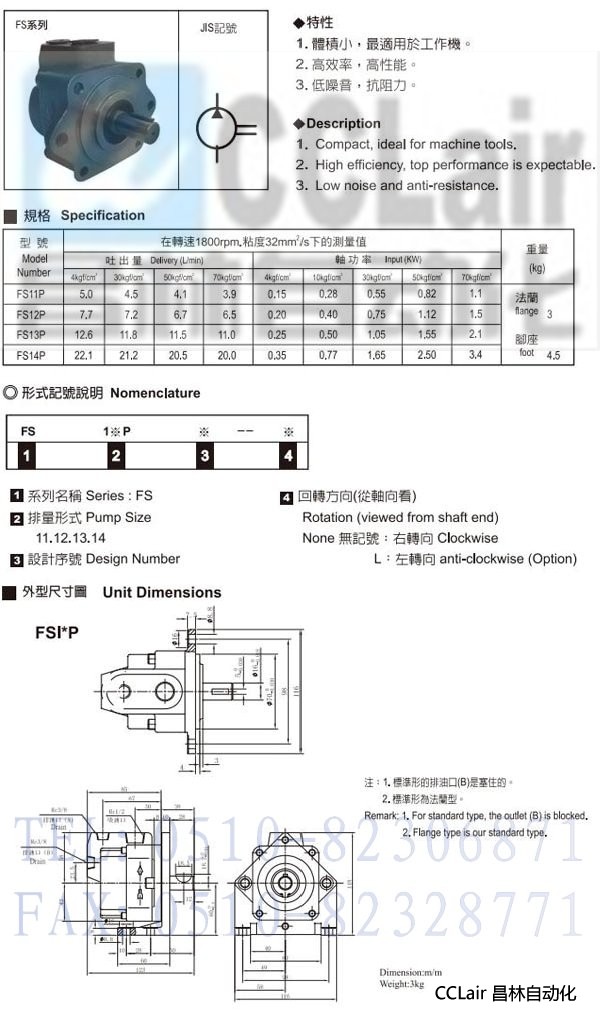 詳細信息 FS11P,F(xiàn)S12P,F(xiàn)S13P,F(xiàn)S14P,小型單葉片泵