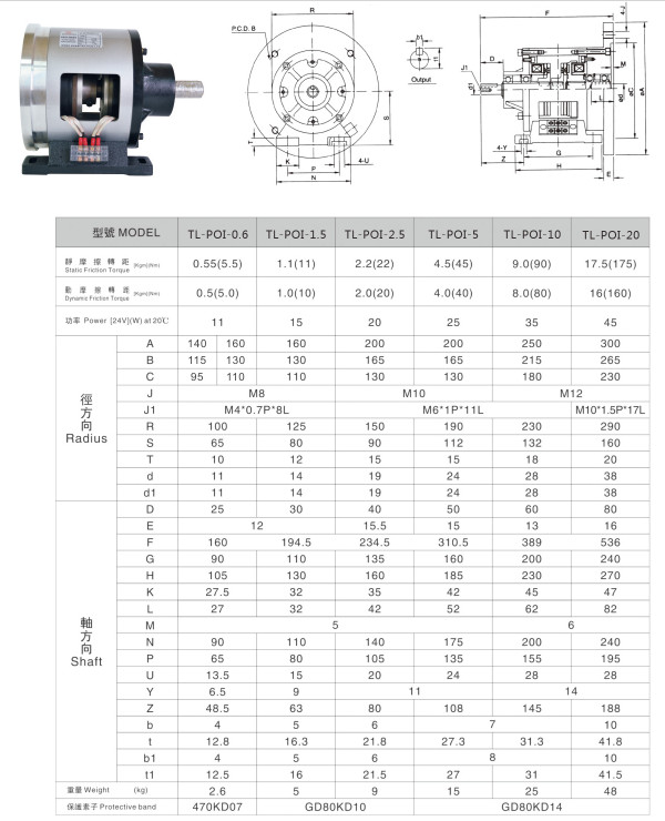 TL-POI-0.6,TL-POI-1.5,TL-POI-2.5,TL-POI-5,TL-POI-10,TL-POI-20,單法蘭電磁離合器剎車組